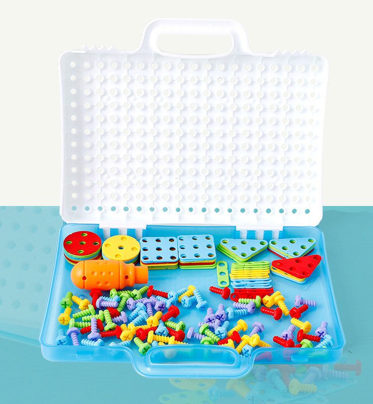 - It includes a sturdy pegboard (24 x 30 x 6 cm), a safe plastic electric drill, and colorful screws that kids can drill into the board to create endless creative designs. Made from environmentally friendly materials, this educational toy fosters fine motor skills and imaginative play while ensuring safety.