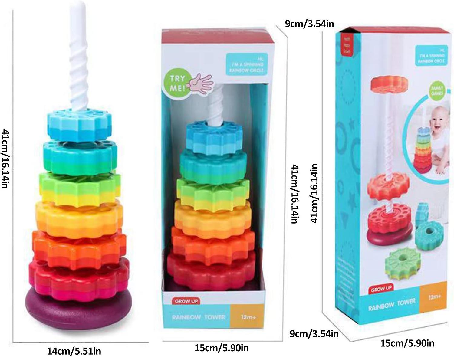 A highly engaging and attractive toy that comes with a base and a spiral for babies to spin the disc from top to bottom while helping them;