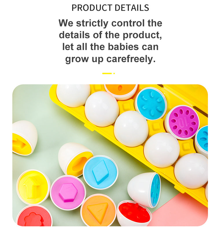 The Smart Egg Shape and Color Matching Set is designed to enhance cognitive development through hands-on learning. This educational toy allows children to sort eggs by their distinct shapes and vibrant colors, promoting fine motor skills, shape recognition, and color differentiation. Crafted for durability and ease of use, it provides an engaging way to develop problem-solving abilities and improve hand-eye coordination in young learners. Ideal for early childhood education, this set supports foundational skills essential for future academic success.