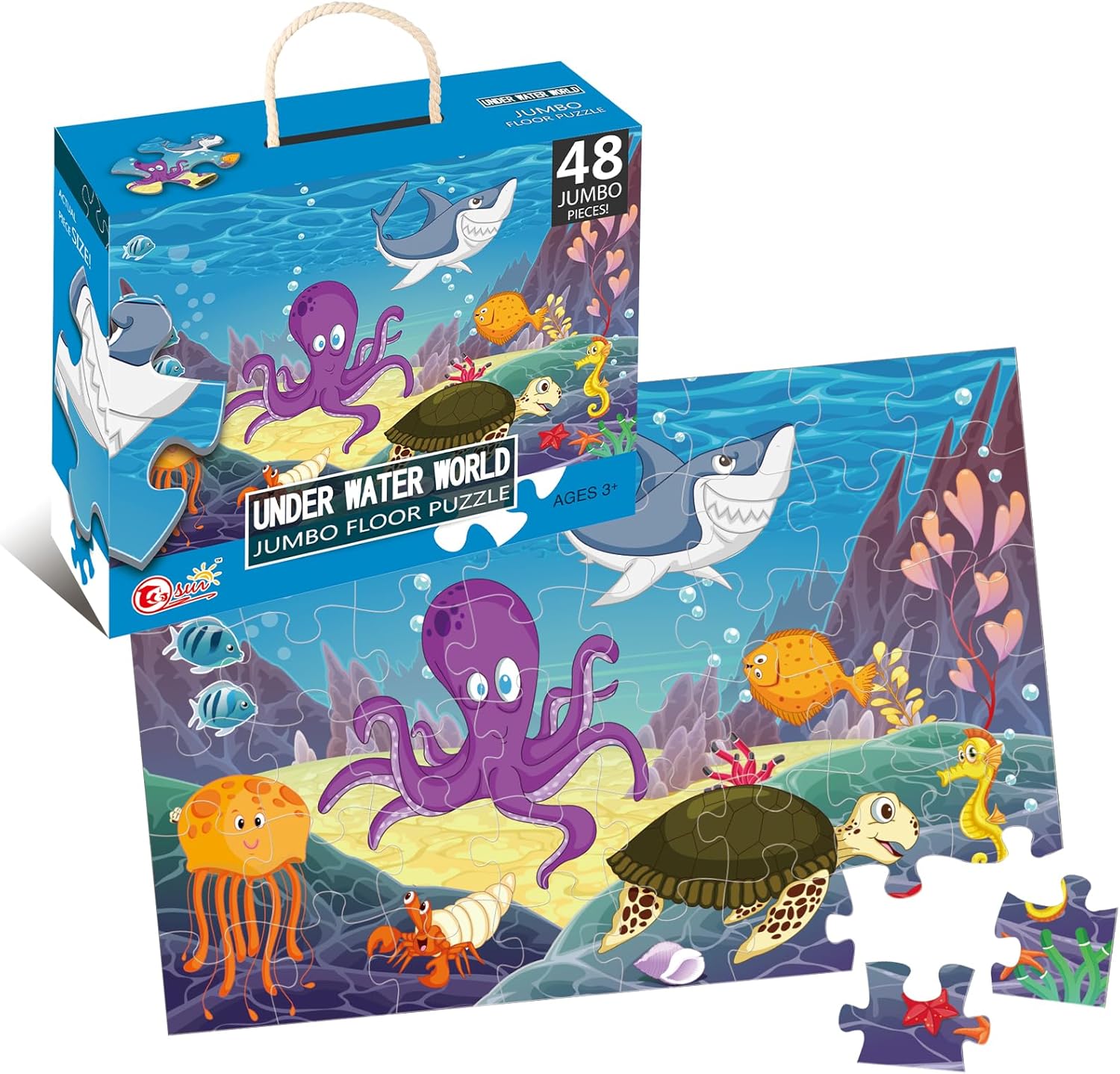 - he finished puzzle measures 3 x 2 Ft. and the gift case is 11.8 x 3.6 x 9.5inches(48-Pieces), jumbo floor puzzles with vibrant and engaging illustrations in a combination of fascinating colors.