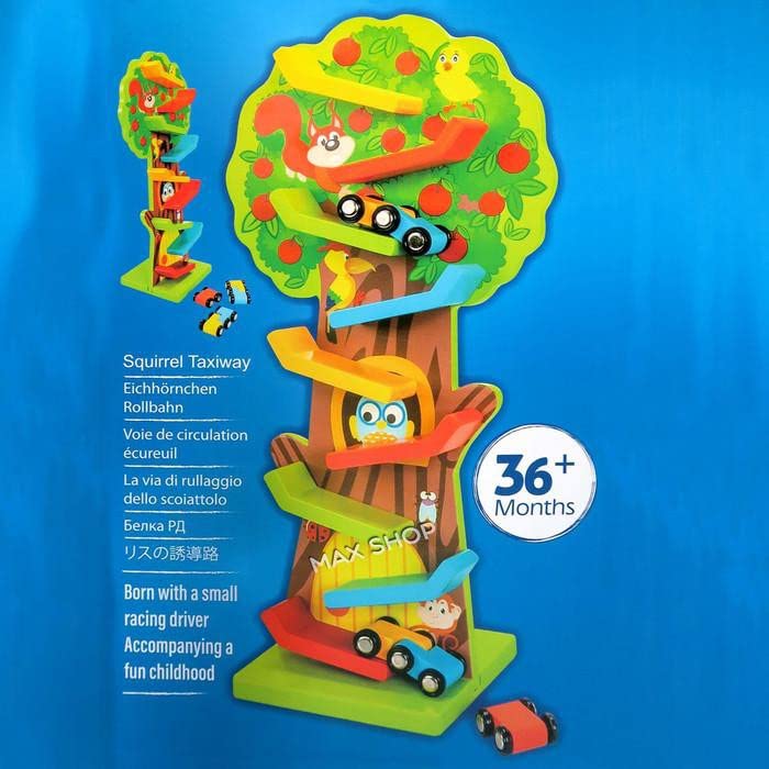 Wooden 9-layer ramp track & racing car play set for baby toddler developmental play toys.